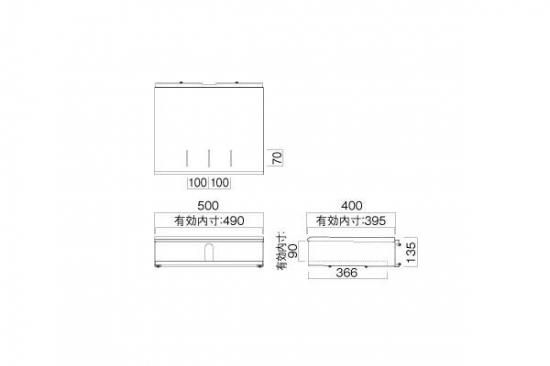 備考:有効内寸:幅 490 × 奥行き 395 × 高さ 90 (mm)